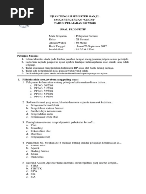 Contoh soal pelayanan farmasi kelas 11 beserta jawabannya.