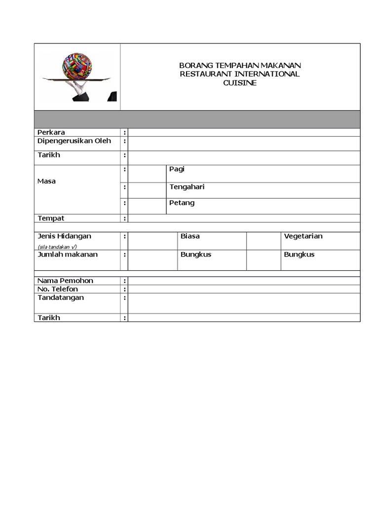Contoh format laporan penelitian tugas riset pemasaran disusun oleh m. Form pemesanan barang online fresh (+62).com. Setiap harinya menjual burger paling enak di kota bloomington pelanggannya kebanyakan pelajar dan mahasiswa. Template ini sangat cocok untuk restoran, pub, bar atau kafe. Template urbangrill adalah pilihan tepat apakah anda memiliki restoran, kilang anggur atau bar grill. Kitchen , bar, dan pastry. Ambil pesanan makanan dan minuman anda secara online dengan template formulir pemesanan makanan dan minuman jotform. Taking order merupakan bagian dari service, biasa dilakukan di room service, restaurant, bar, dan banquet. Taking order dapat diartikan menerima dan mencatat pesanan tamu, dalam hal ini makanan dan minuman, yang selanjutnya akan diteruskan ke bagian yang terkait, antara lain : Visit the post for more. A menu order form may have different formats and outlines from various types of restaurants since they resort to creating an order form fit for their business. Template menu makanan ini dapat menarik setiap pemilik restoran jenis apa saja, mengutamakan disain kreatif multiguna. Anda dapat melihat atau membagikan tanggapan pesanan di perangkat apa pun, sehingga memudahkan anggota staf untuk mengetahui informasi terbaru.